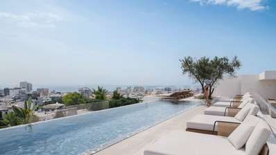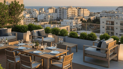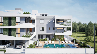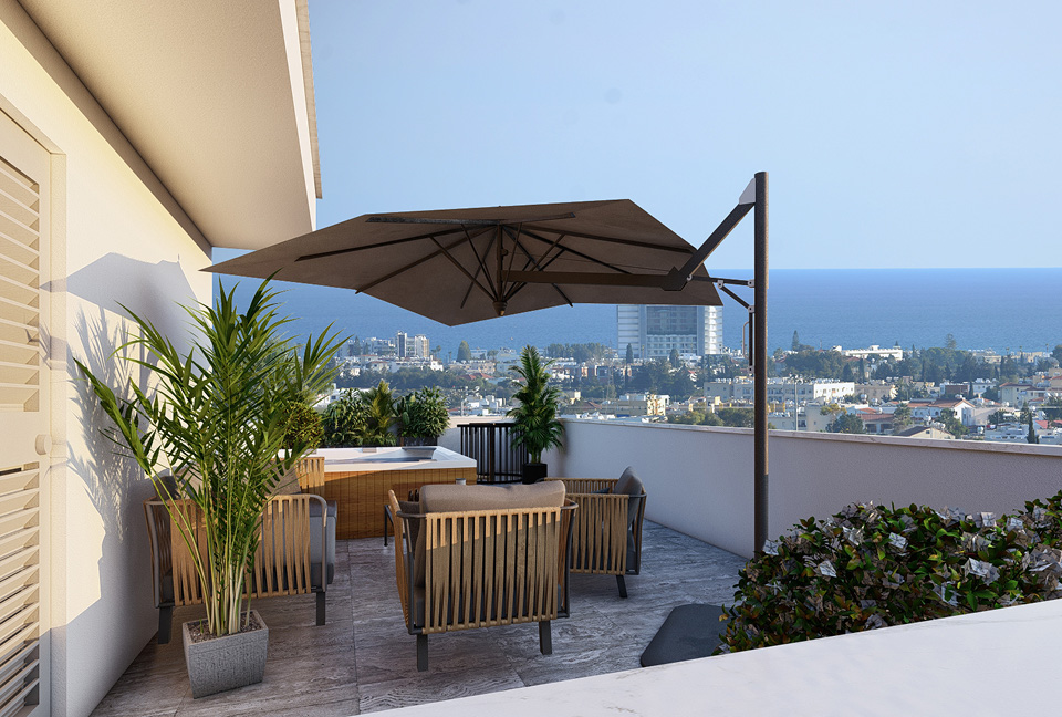 Oroklini Hills is a new two-story building in Oroklini area, Larnaca. It offers modern two-bedroom apartments with amazing city views, mountain views, and sea views.