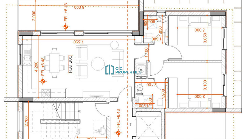 For sale: A modern apartment currently under construction, offering a spacious internal area of 78 m2. Located on the second floor of a three-story building with elevator access, this property features two comfortable bedrooms and two contemporary bathrooms, designed for convenience and style.