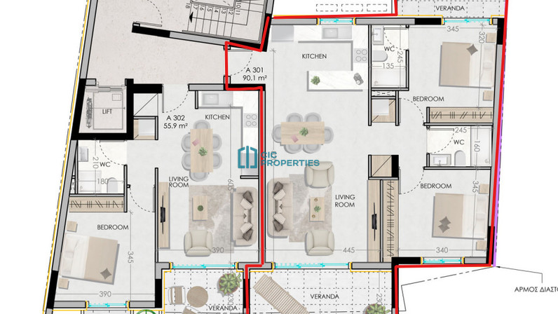 For sale off-plan, this modern two-bedroom apartment offers a comfortable lifestyle in the vibrant area of Drosia. Situated on the third floor of a well-designed building with elevator access, the apartment features 90.1 square meters of internal space, making it ideal for small families, professionals, or anyone seeking a blend of style and convenience.