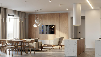 • Combined kitchen and dining area