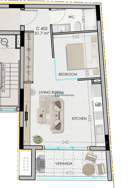 For sale: Off-plan modern apartment in the sought-after area of Drosia. This new development offers a comfortable internal space of 51.7 m², featuring one spacious bedroom and one contemporary bathroom. Positioned on the top floor and accessible by elevator, this apartment ensures privacy and easy access for all residents.